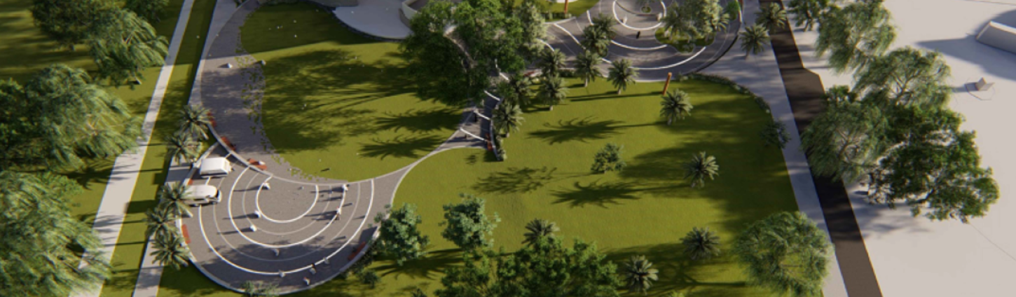 تتكون أرض الفعاليات التي تمتد على مساحة5137 متراً مربعاً على مسرح خارجي، ومناطق مرصوفة وممرات، ونافورة جافة لتزيين أرض الفعاليات، و منطقة ألعاب مخصصة للأطفال ،بالإضافة إلى مناطق زراعية تجميلية بمساحة 342 متراً مربعاً.