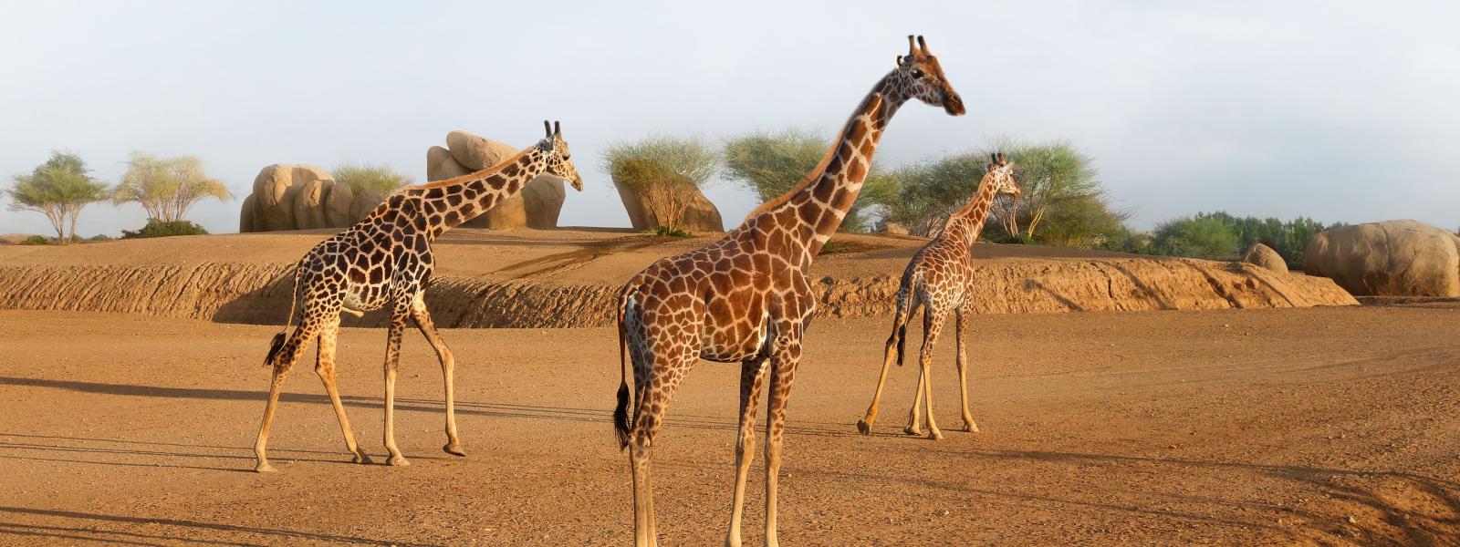 Rothschild’s giraffes used to be on the IUCN’s Red List under its “endangered” category, but in 2018 we were moved to the safer “near threatened” category, thanks to efforts to protect the species by establishments like Al Ain Zoo, Uganda Conservation Foundation, and other giraffe conservation centers. There are only a few locations left where you can see giraffes like me in the wild, including Lake Nakuru National Park in Kenya and Murchison Falls National Park in northern Uganda. Threats to our population include predators such as leopards, lions, crocodiles, and hyenas, and the four IUCN recognized threats: habitat loss, civil unrest, poaching, and ecological changes.