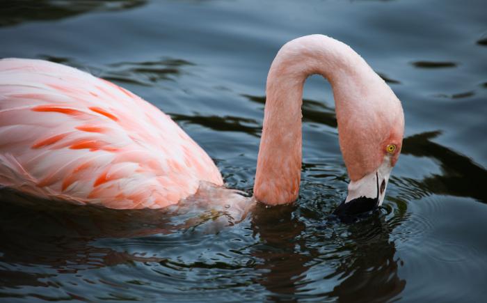 Greater Flamingo rarely takes food from the water surface and because of its size it is able to wade out into deeper water to feed.